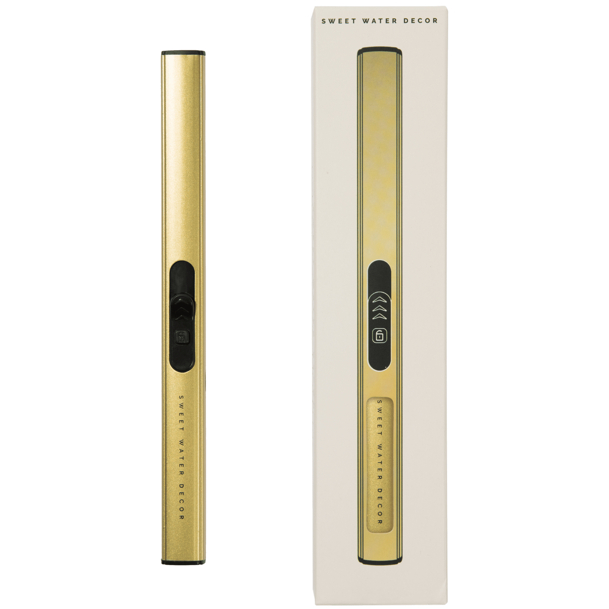 Our rechargeable electric lighter is sleek and modern looking, while also being environmentally friendly. The ultra-thin design and sleek gold finish make this lighter an attractive accessory. In only 1-2 hours, you can fully charge your lighter and it will last for hundreds of uses. Pair it with our signature Sweet Water Decor candles and you have the perfect gift for anyone!
